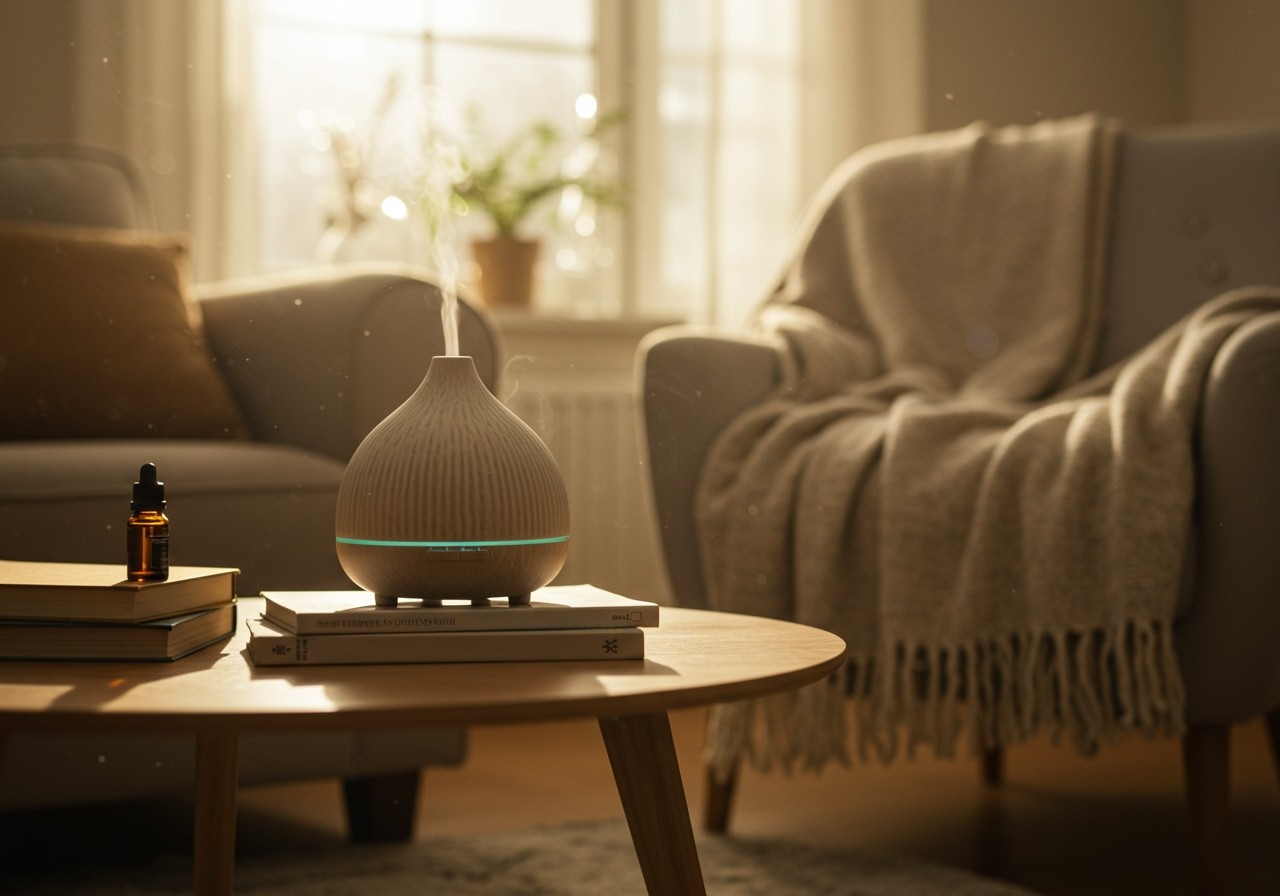 A nappaliban, ahol sok időt töltünk, érdemes a központi helyre tenni a diffúzort, például egy dohányzóasztalra vagy polcra. Fontos, hogy ne legyen közvetlenül bútorok vagy függönyök közelében, mert a pára károsíthatja azokat.
